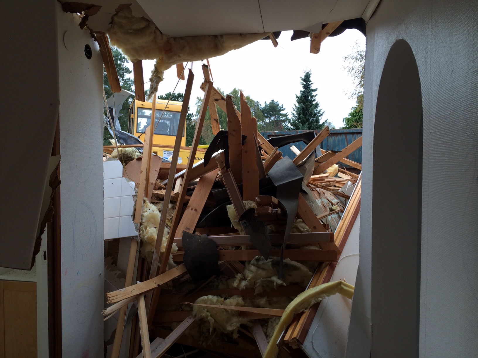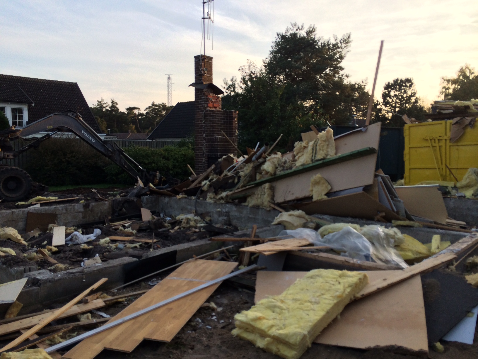 Jag var och tittade på mammas hus först på torsdagen och sedan igen på fredagen. På torsdagen tog jag med Matilda och lyckades hålla mig, men när jag var där själv i fredags kändes det så himla konstigt. Och det hela slutade med att jag satt gråtandes i bilen hela vägen hem. Det var så sorgligt. Detta hus som morfar byggt, som vi varit i varje sommar, som man målat och fixat, gjort fint, bott i vissa perioder. Nu jämnas det med marken. Badrummet som mamma var så noga med att hålla rent är halvt och alldeles förstört. Känns som att gör något olagligt, och jag dras med tankar som ”tänk om vi glömt något!” Det som också var lite konstigt var att där plötsligt backade upp en bil och ut kom ett blomsterbud. Det var blommor till mamma på hennes födelsedan. Där gick jag och kände nästan skam, men en blombukett i handen i bråte från hennes hus. Precis som om JAG rev det och inte fick. Blommorna var från John, som också har ett nära band till Falsterbo. Så kallas huset… Ska man till Falsterbo så ska man till mormor och morfars hus.