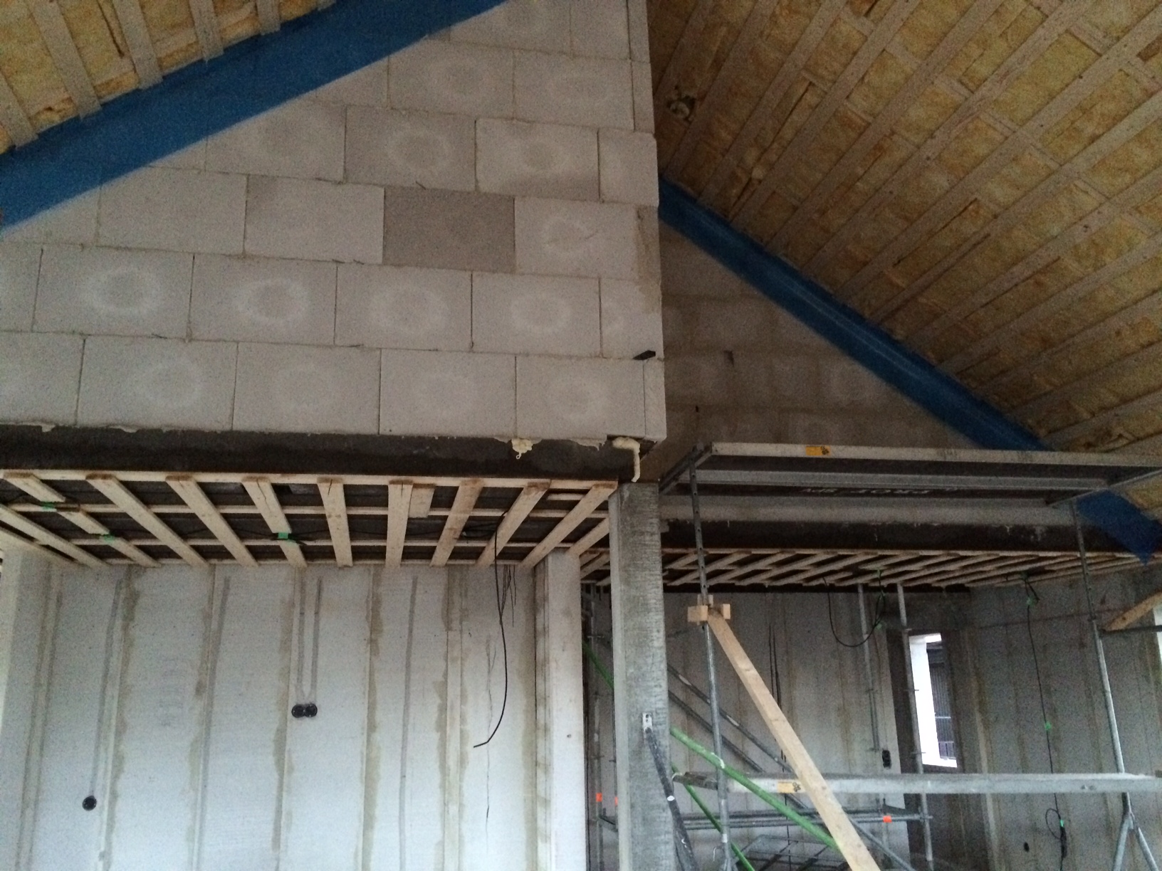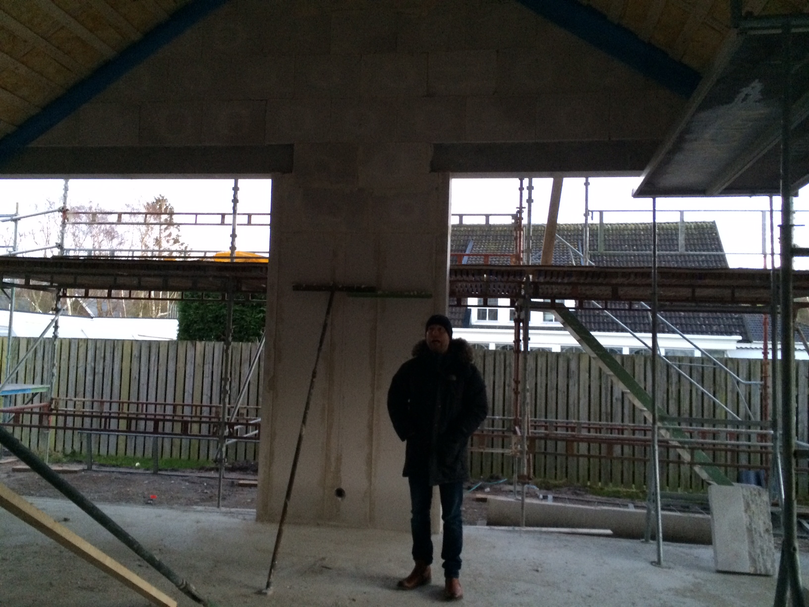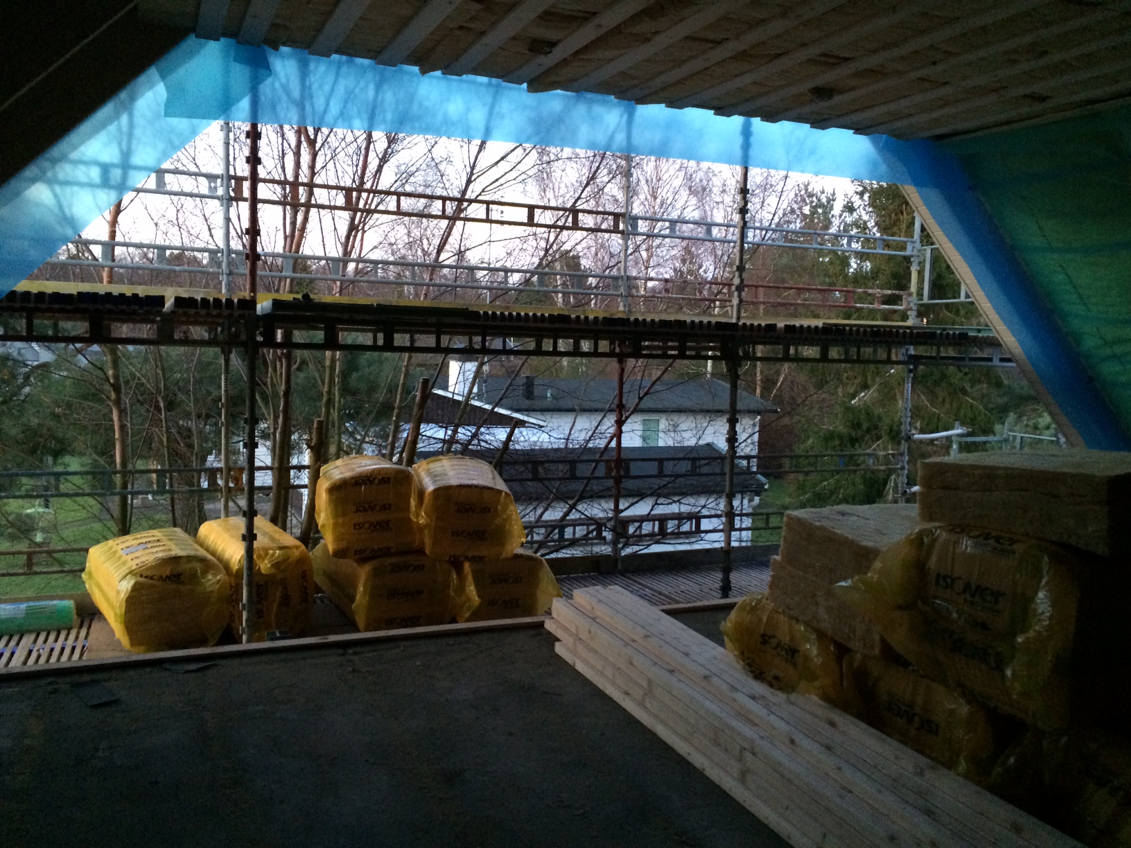 Och sist…Huset…:Det går framåt. Nu börjar man få känslan för rymden i vardagsrummet och för första gången var jag upp och tittade på ovanvåningen.