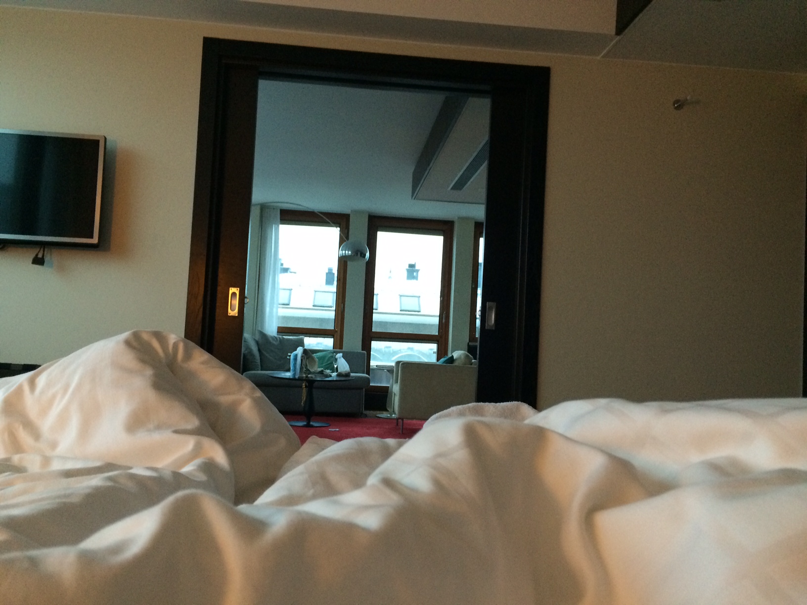 Mormor och Bertil ska ha hand om barnen och vi åker på kvällen. Äter på Koh Panyang och har det jättemysigt. Sen har han tom ordnat en stor svit på Scandic. Nästan så jag fick lite ont i magen. Allt detta för mig! För oss! Men visst var det lyxigt.