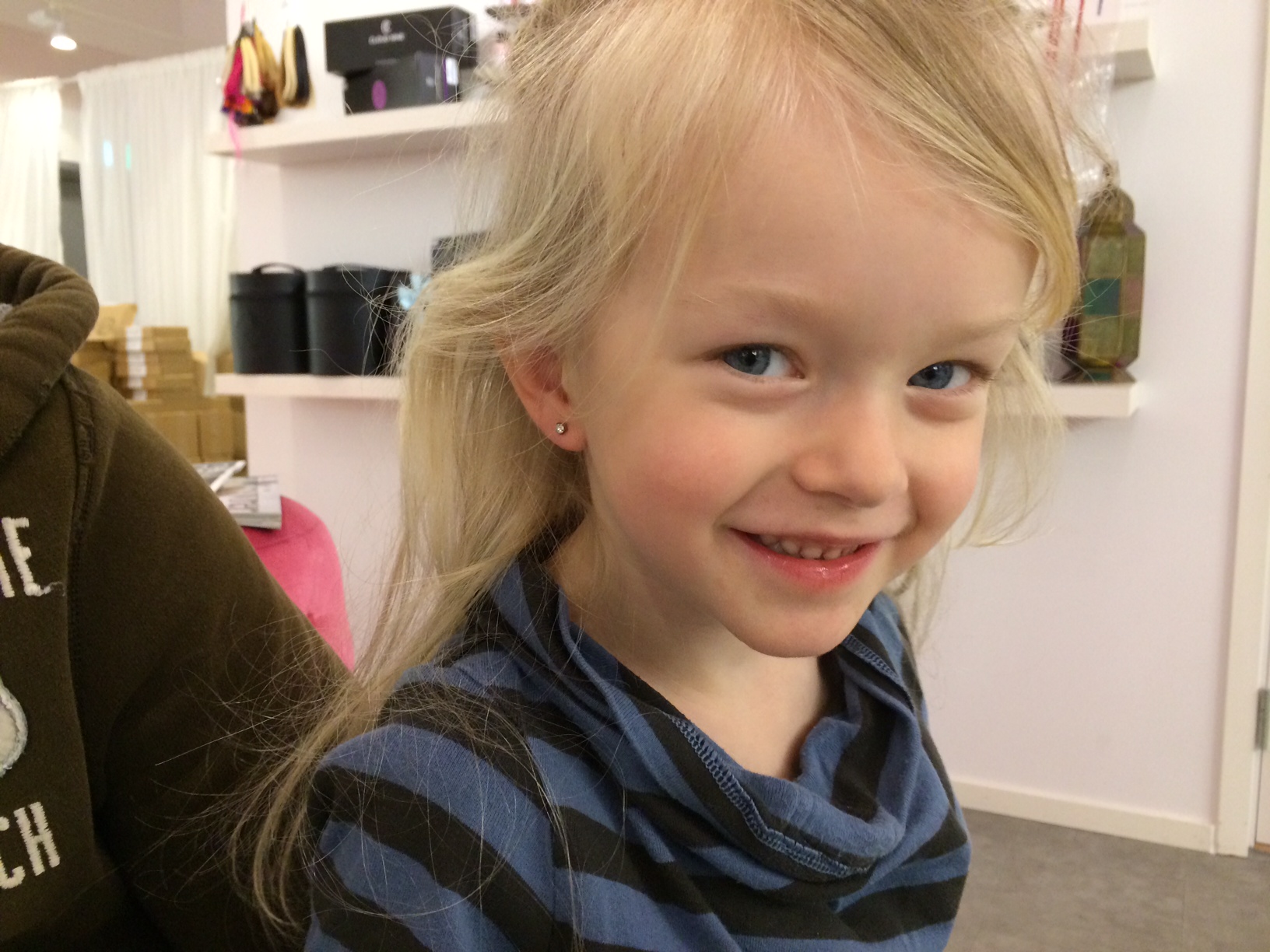 Helgen innan var vi på Emporia med barnen. Matilda fick hål i öronen. Blev så himla fint. Där är alltid diskussioner om det är för tidigt eller ej. Just med hål i öronen ser jag inte att det skulle kunna vara för tidigt. Matilda reagerade inte ens när de sköt hennes öron med pistolen. Hon är ganska tålig! Och sen fick hon ju en chokladbit och sen en glass och sen var det glömt.