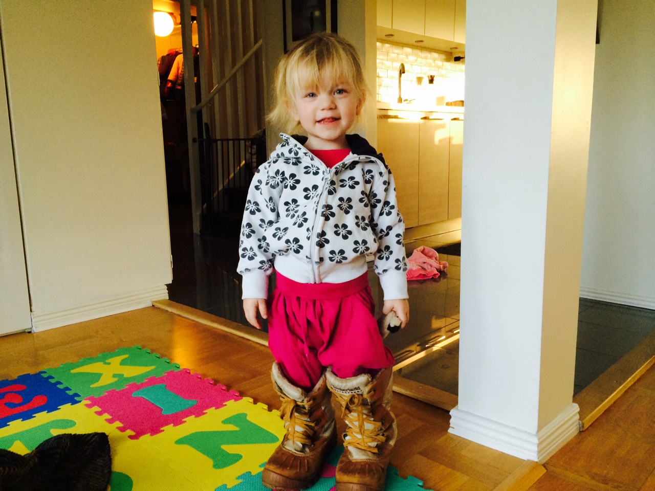 Hon älskar klackskor, men i brist på annat funkar även mammas.