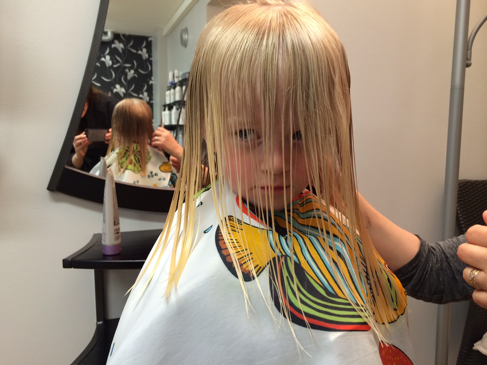 Och tänk att mamma äntligen tog henne till frisören. Närmare 5 år hann hon bli!